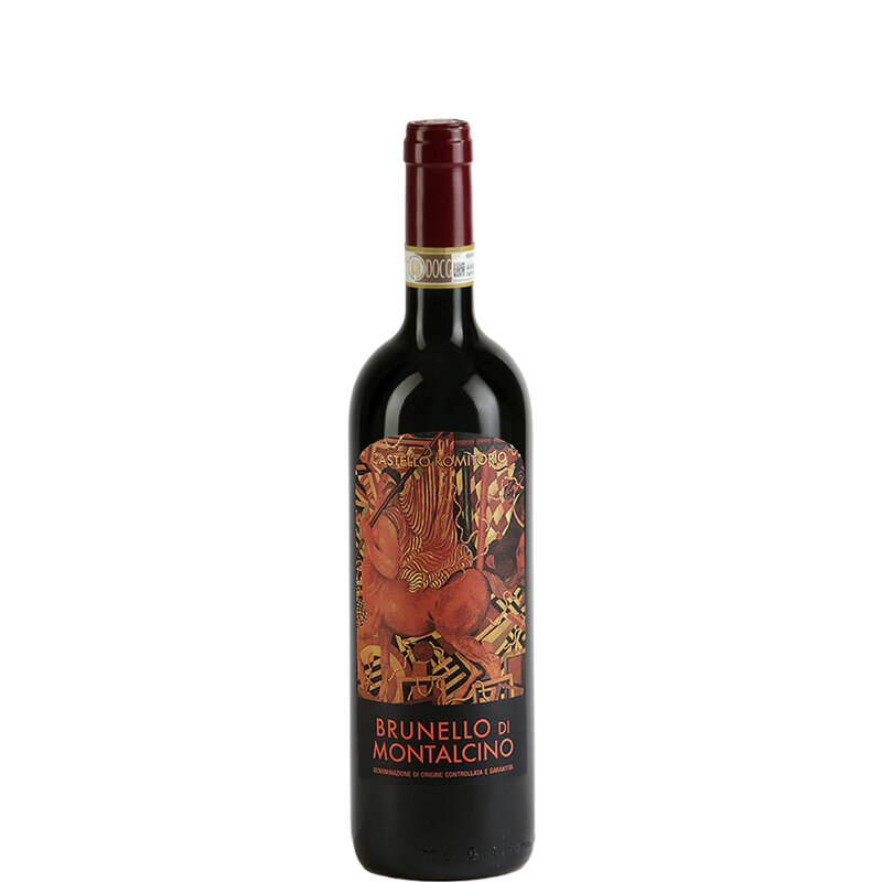 Brunello di Montalcino DOCG Castello Romitorio Alla vista è di colore granato, con un’unghia aranciata. Il bouquet di profumi al naso è concentrato, e ruota intorno a viola, frutta essiccata, sigaro, caffè, pepe rosa e lievi tocchi minerali. All’assaggio è di ottima struttura, con un notevole grip tannico e una vena che rinfresca il sorso. Chiude con un finale lungo. 14,5% VOL. 75 CL.