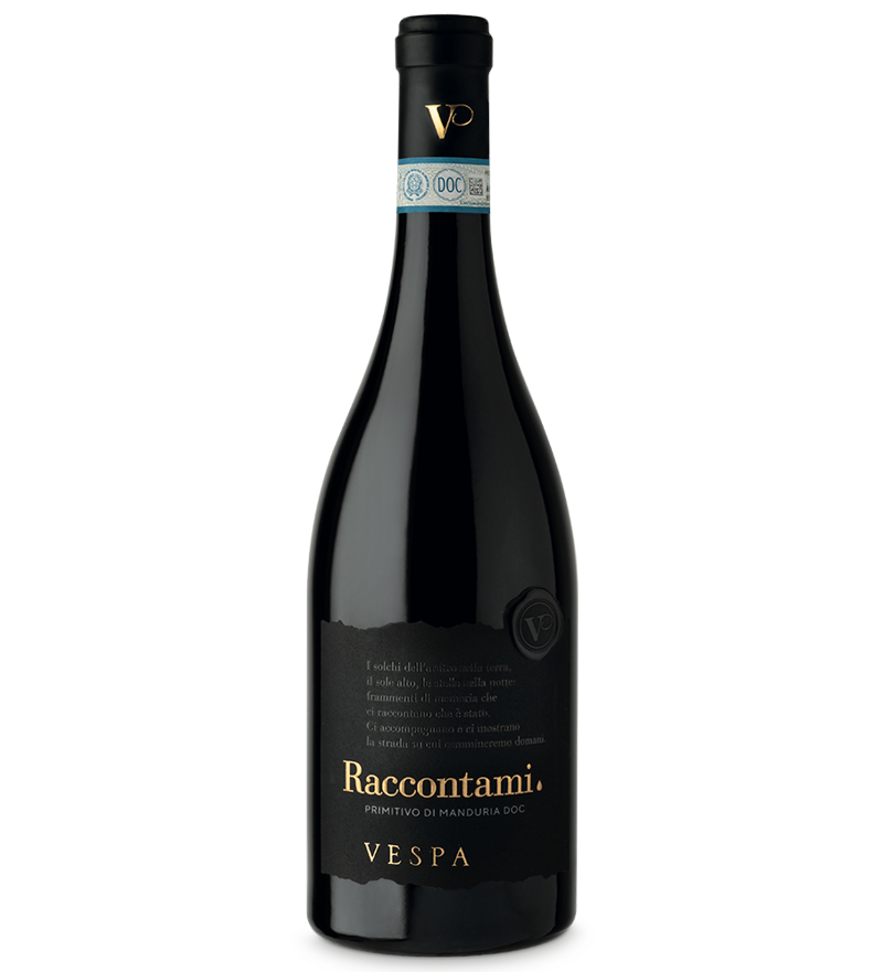 Questo Primitivo di Manduria narra il viaggio della nostra famiglia attraverso l’affascinante mondo del vino. La ricchezza visiva annuncia un carattere deciso e, al tempo stesso, un impatto vellutato. Il profumo di spezie e frutti di bosco ne anticipa la grande, morbida bevibilità. Seppur ideale accanto a piatti impegnativi a base di carne, “Raccontami” può accompagnare in realtà una parte consistente della cucina italiana.
